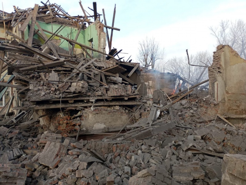 В пгт Антоновка в результате обстрела ранены 2 местных жителей, повреждена школа, по меньшей мере 16 частных домов, автомобили и газопроводные трубы.